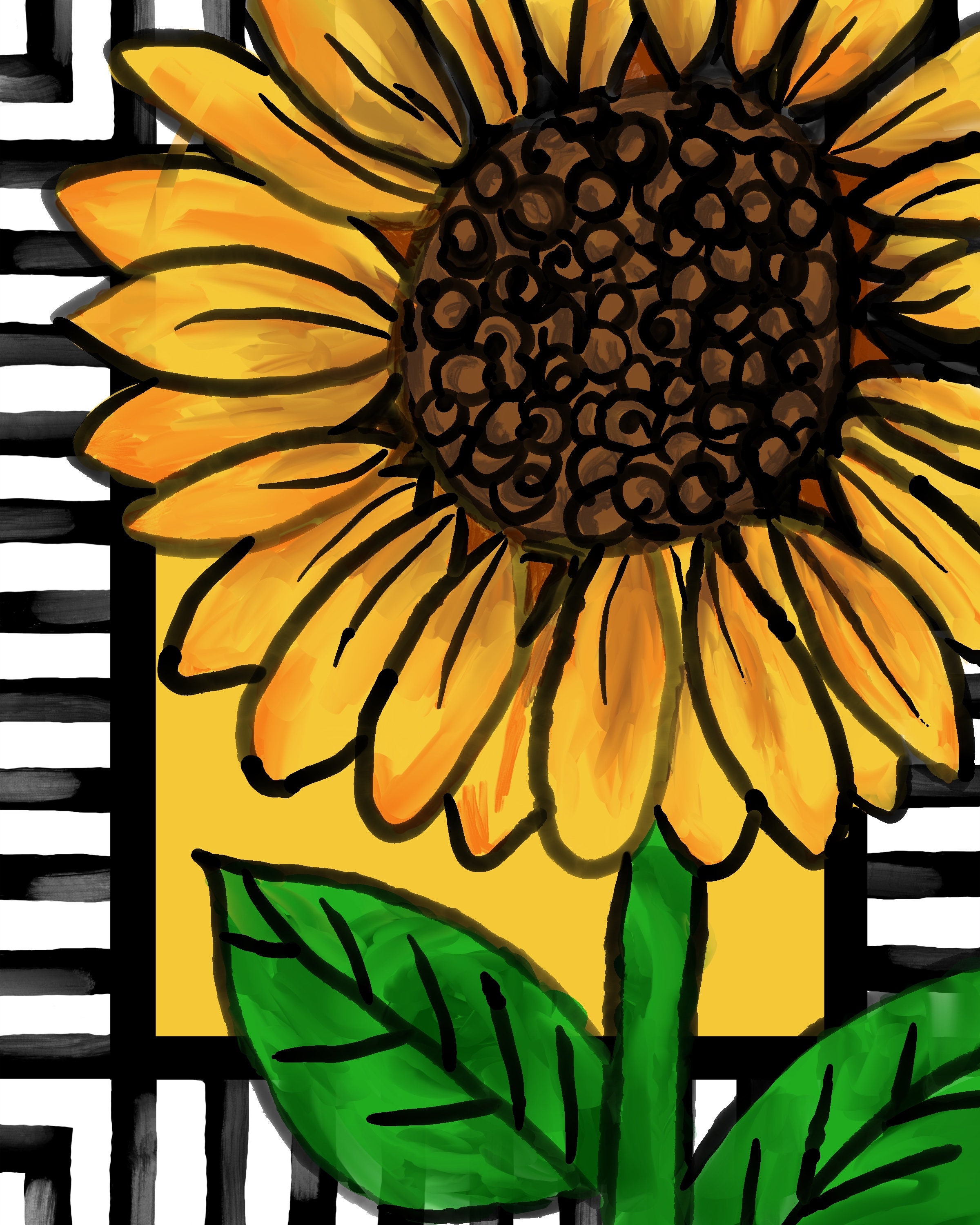 Whimsical Sunflower with Border Floral Printable