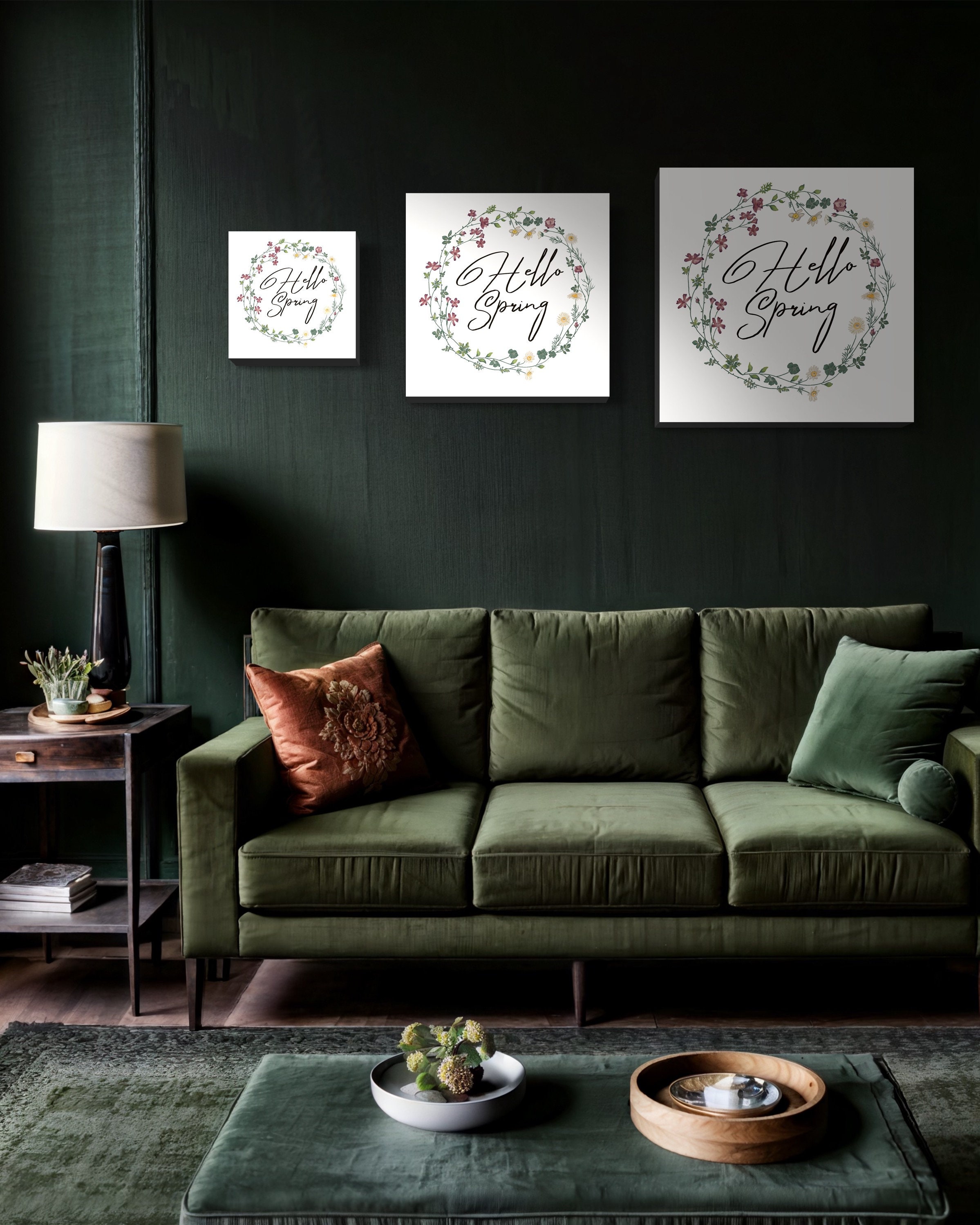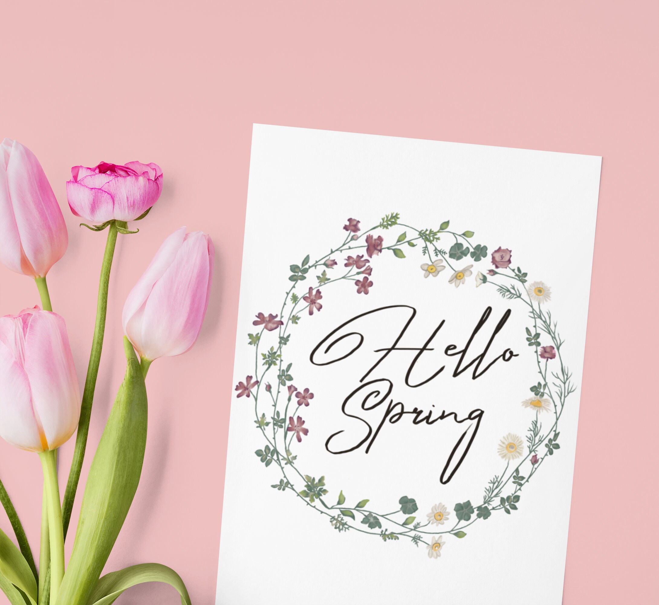 - Hand painted pastel watercolor Hello Spring square floral wreath - Sized at 10”x10” and easily resizable to 8”x8”, 12”x12”, 16”x16” and 20”x20” - Includes .jpg file for canvas, photo, poster prints and more - Also includes .png file for printing on bags, mugs, t-shirts, pillows, blankets, notecards, and postcards and more