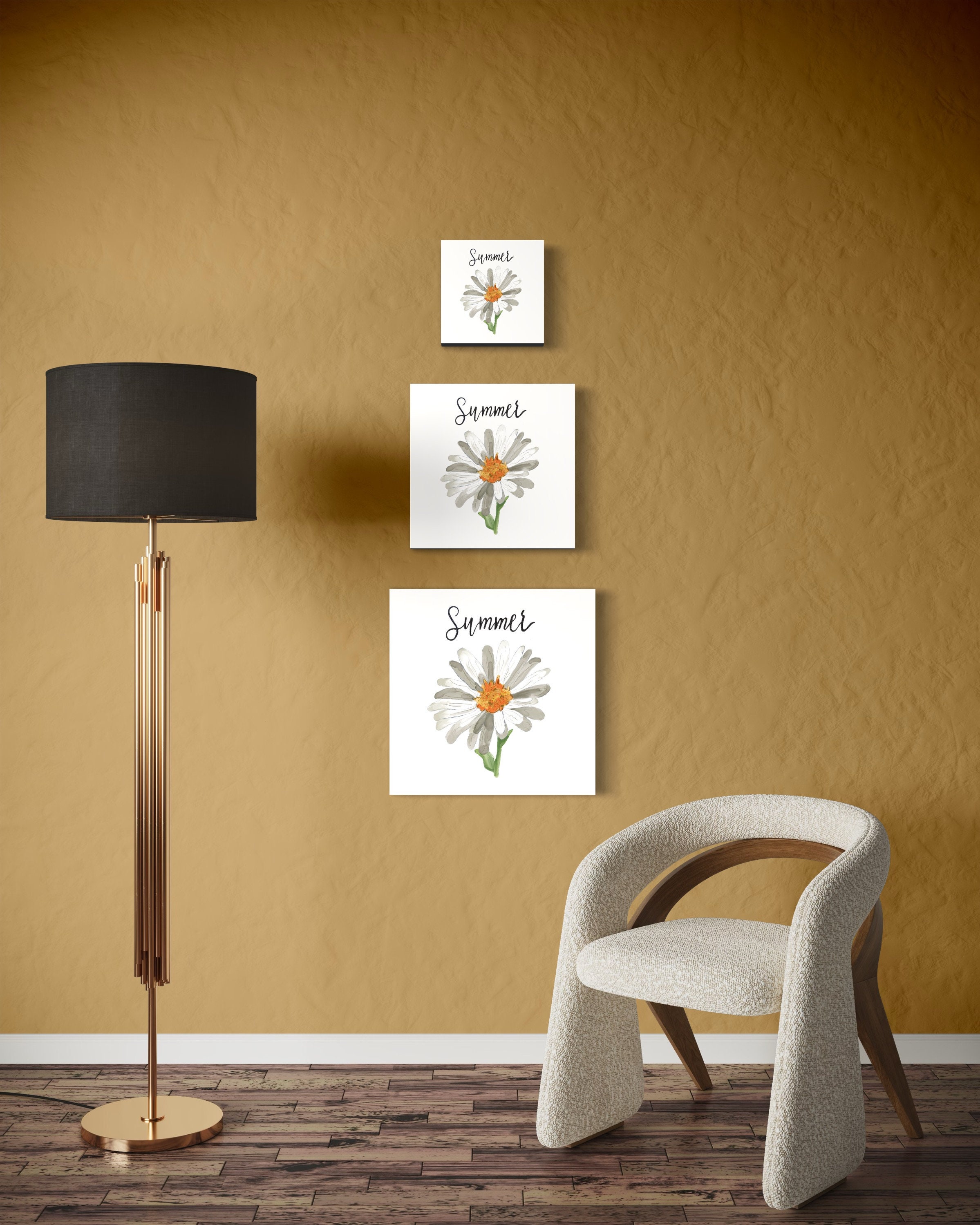 • Summer Daisy Watercolor Hand Painted sign bundle • Sized 10”x10” and easily resizable 16” x 16” and 20”x 20” • Includes .jpg file for canvas, photo, poster prints and more • Also includes .png file for printing on bags, mugs, t-shirts, pillows, blankets, notecards, and postcards and more
