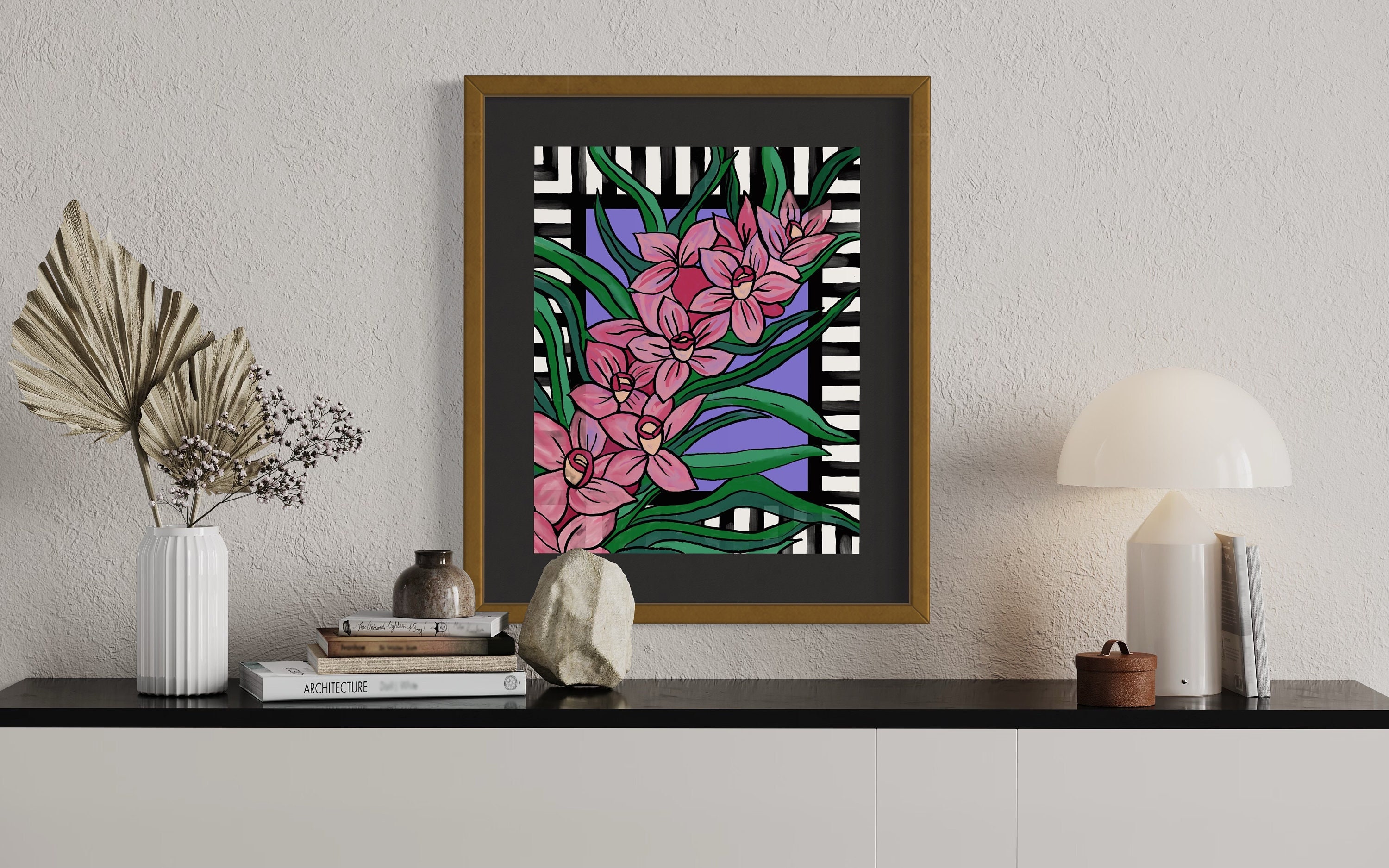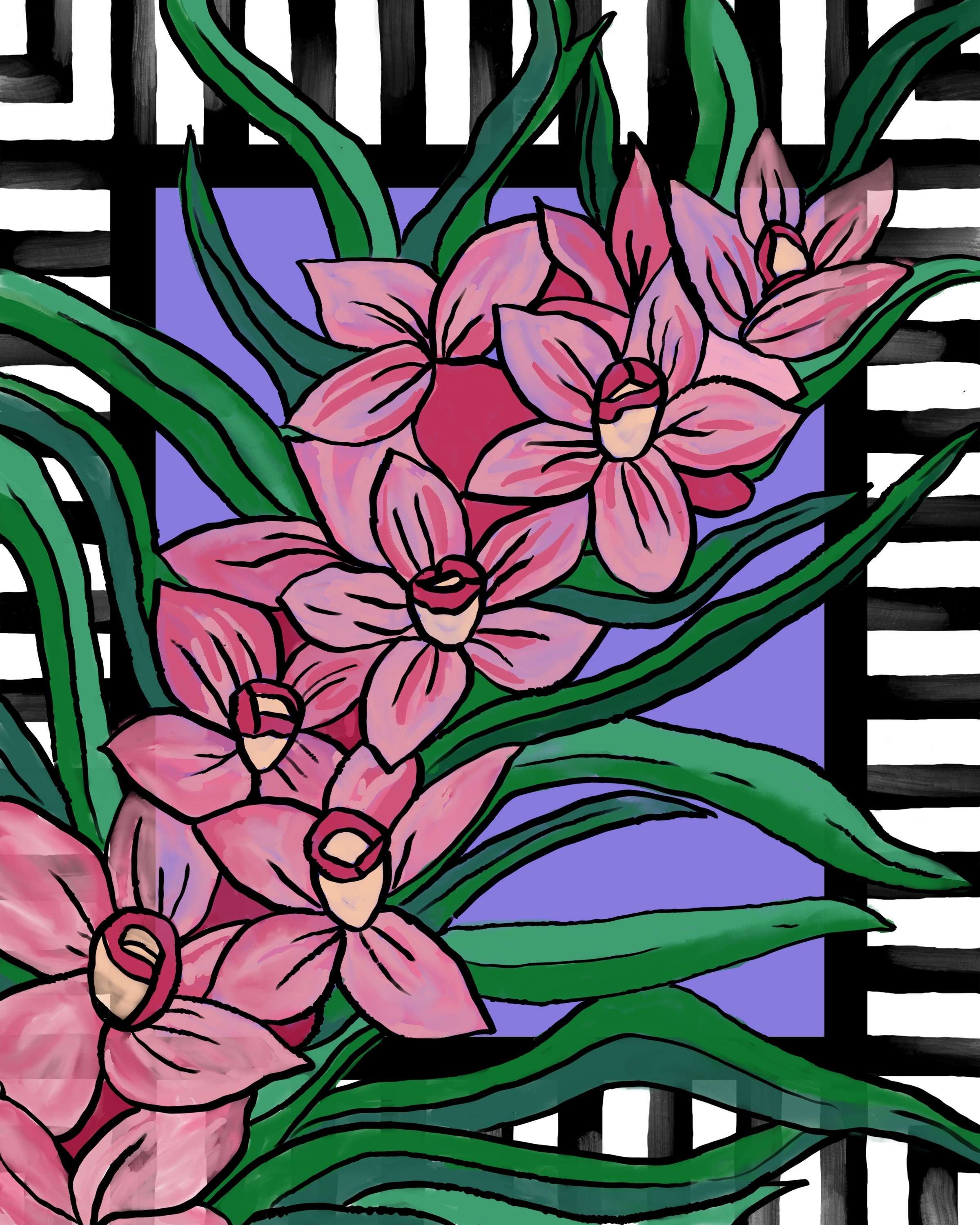 Whimsical Pink Gladiolus mFloral with Border Printable