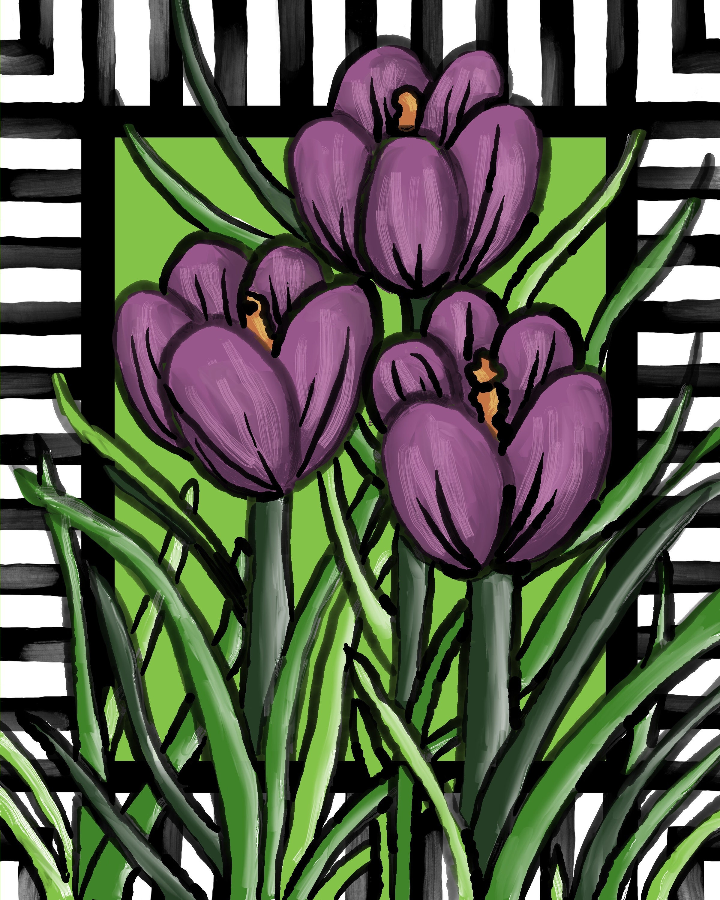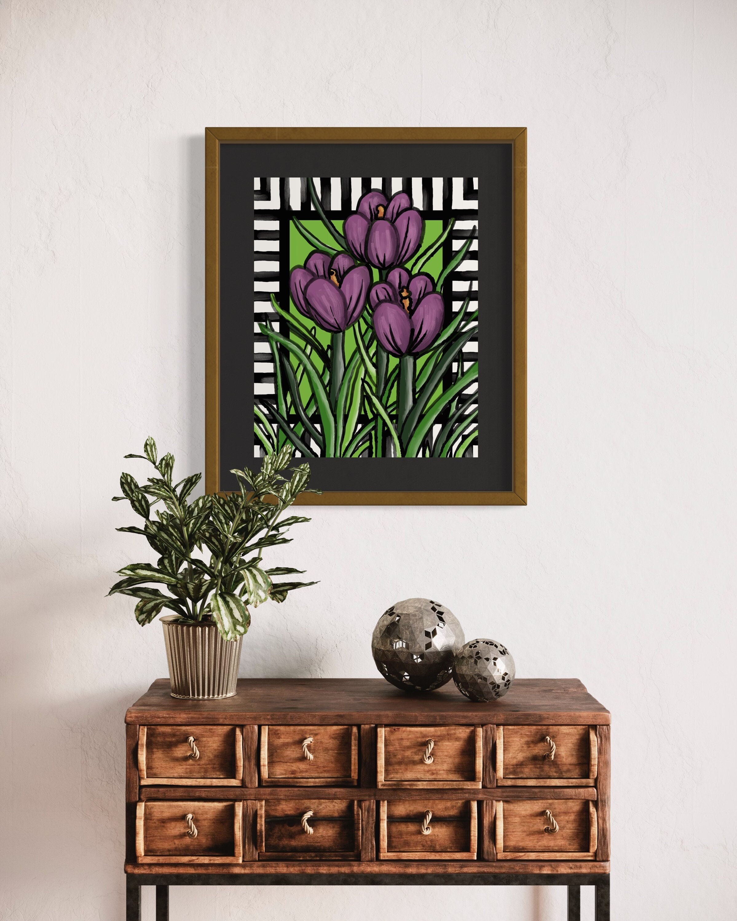 Whimsical Purple Tulips with Border Floral Printable