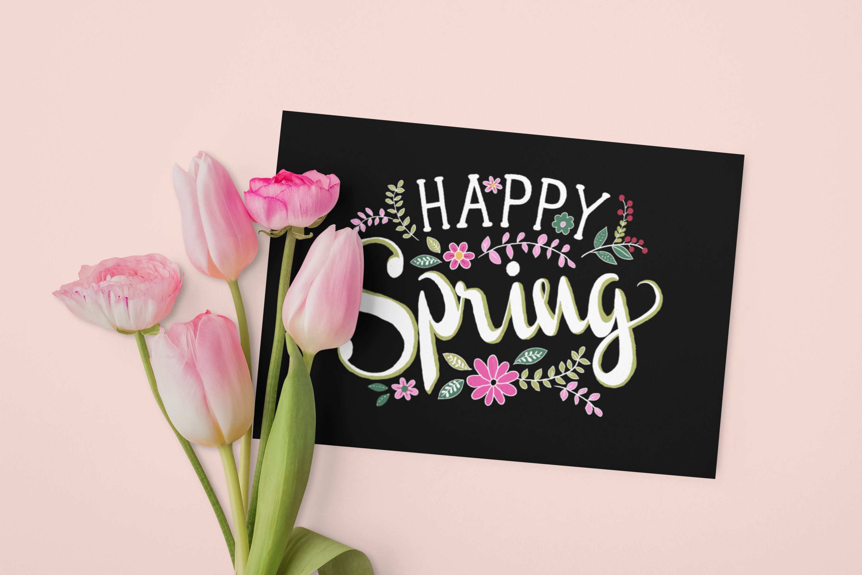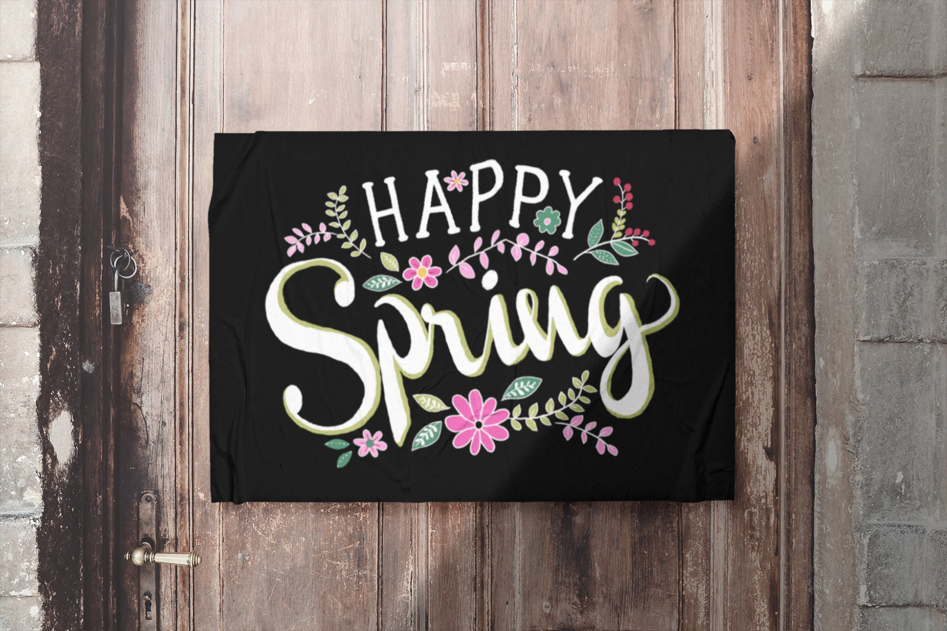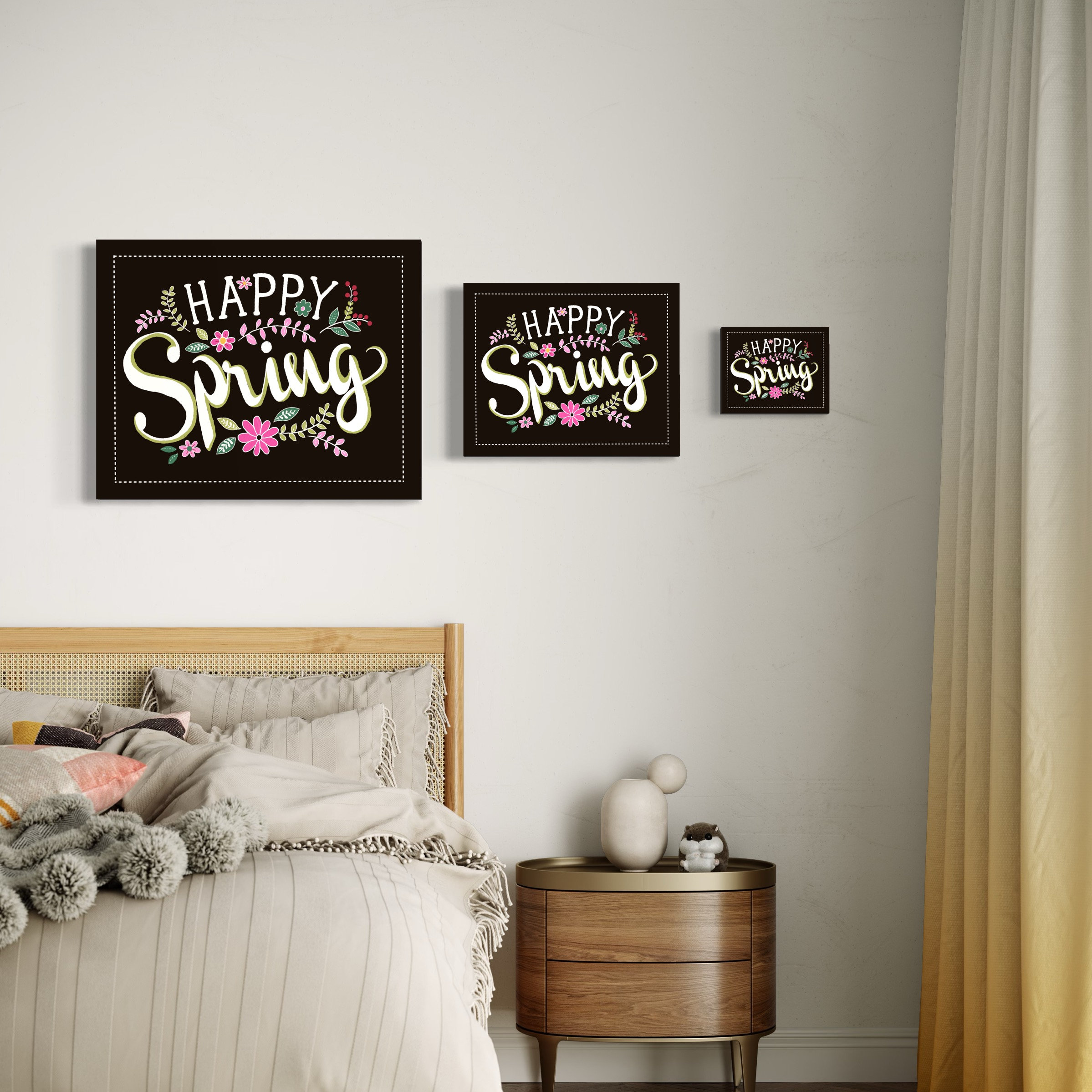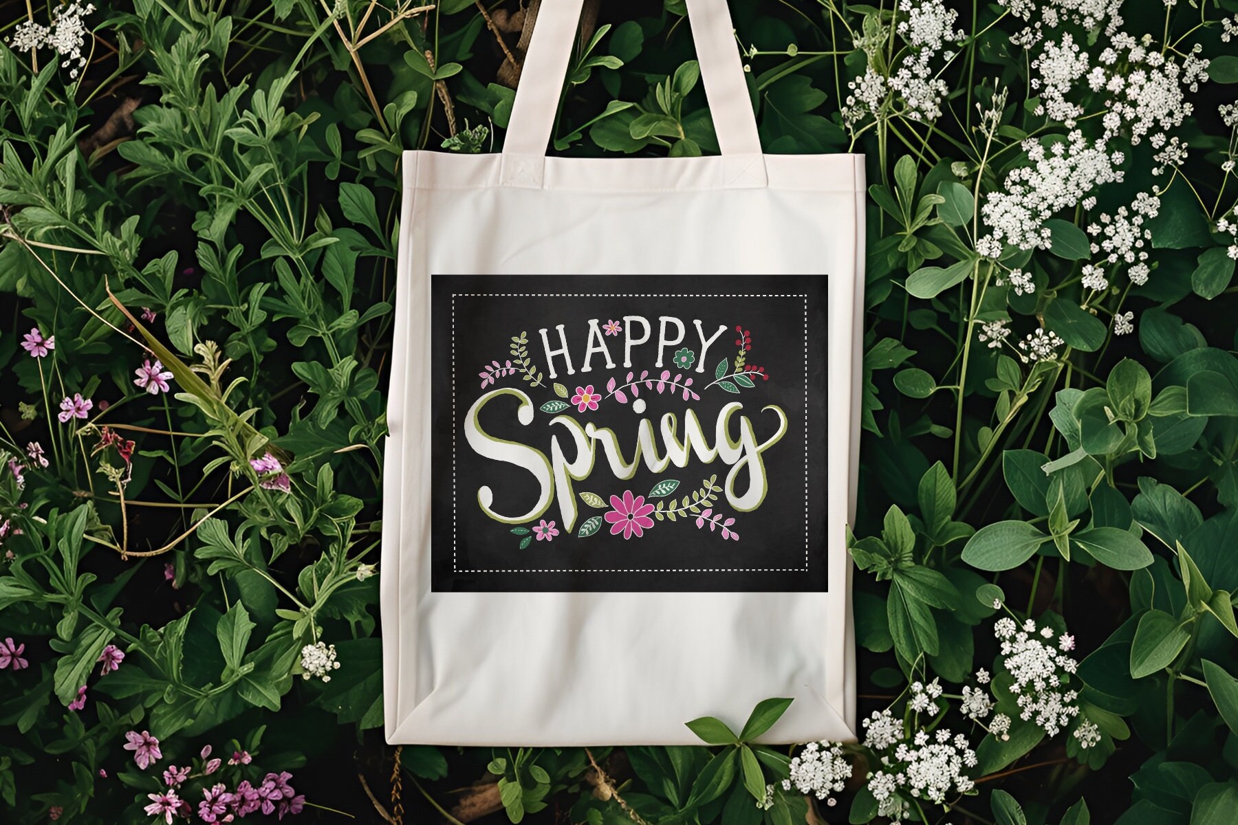 - Hand drawn chalk Happy Spring printable with leaves, berries, and flower accents on a black background - Sized at 10” x 8” and easily resized to 20” x 16” and 30” x 24” - Includes .jpg file for canvas, photo, poster prints, and more - Also includes .png file for printing on bags, mugs, t-shirts, pillows, blankets, notecards, and postcards