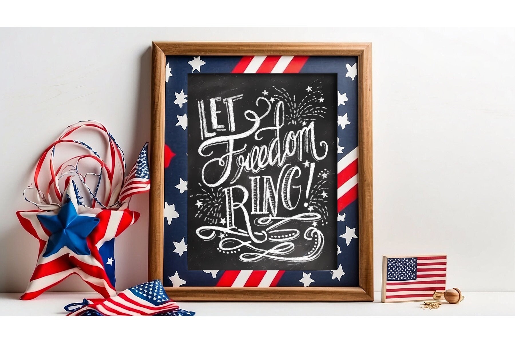Get ready to celebrate the 4th of July in style with this patriotic Chalkboard digital printable bundle! Let freedom ring and fireworks explode with this hand-drawn design that will add a touch of Americana to your home decor.
