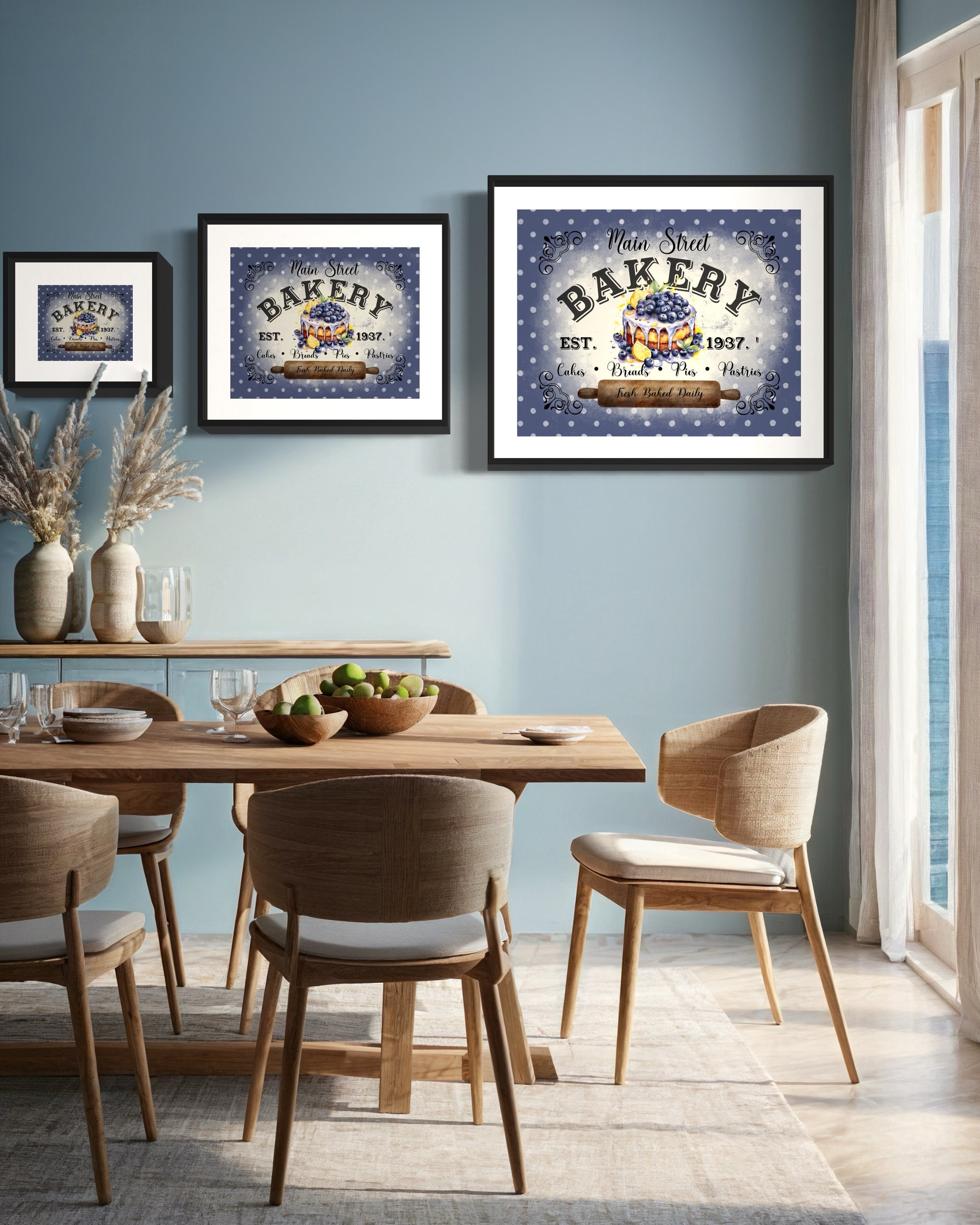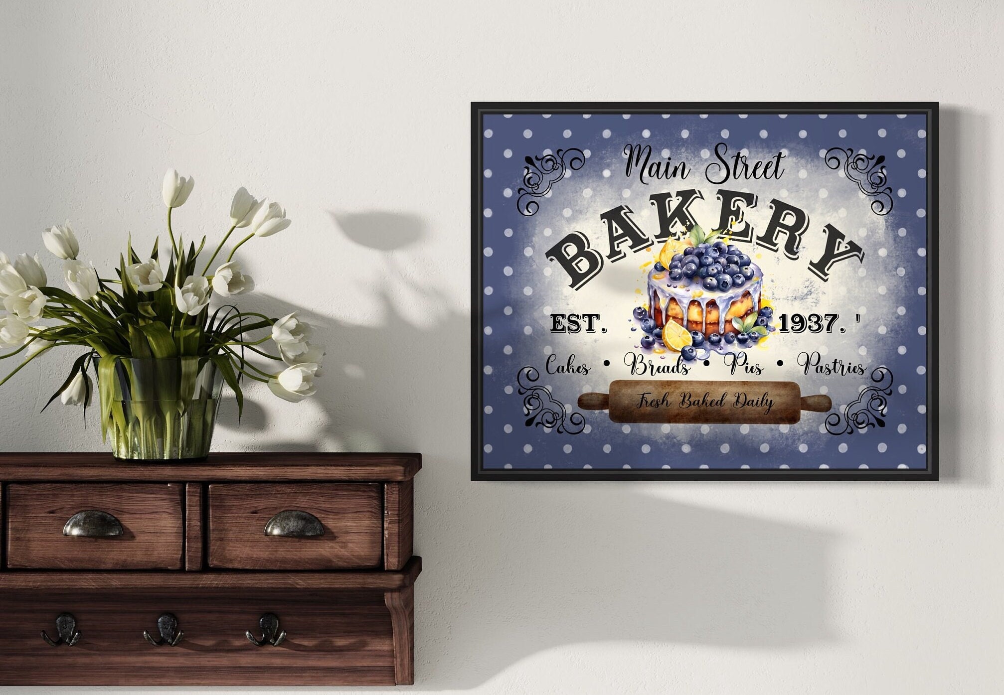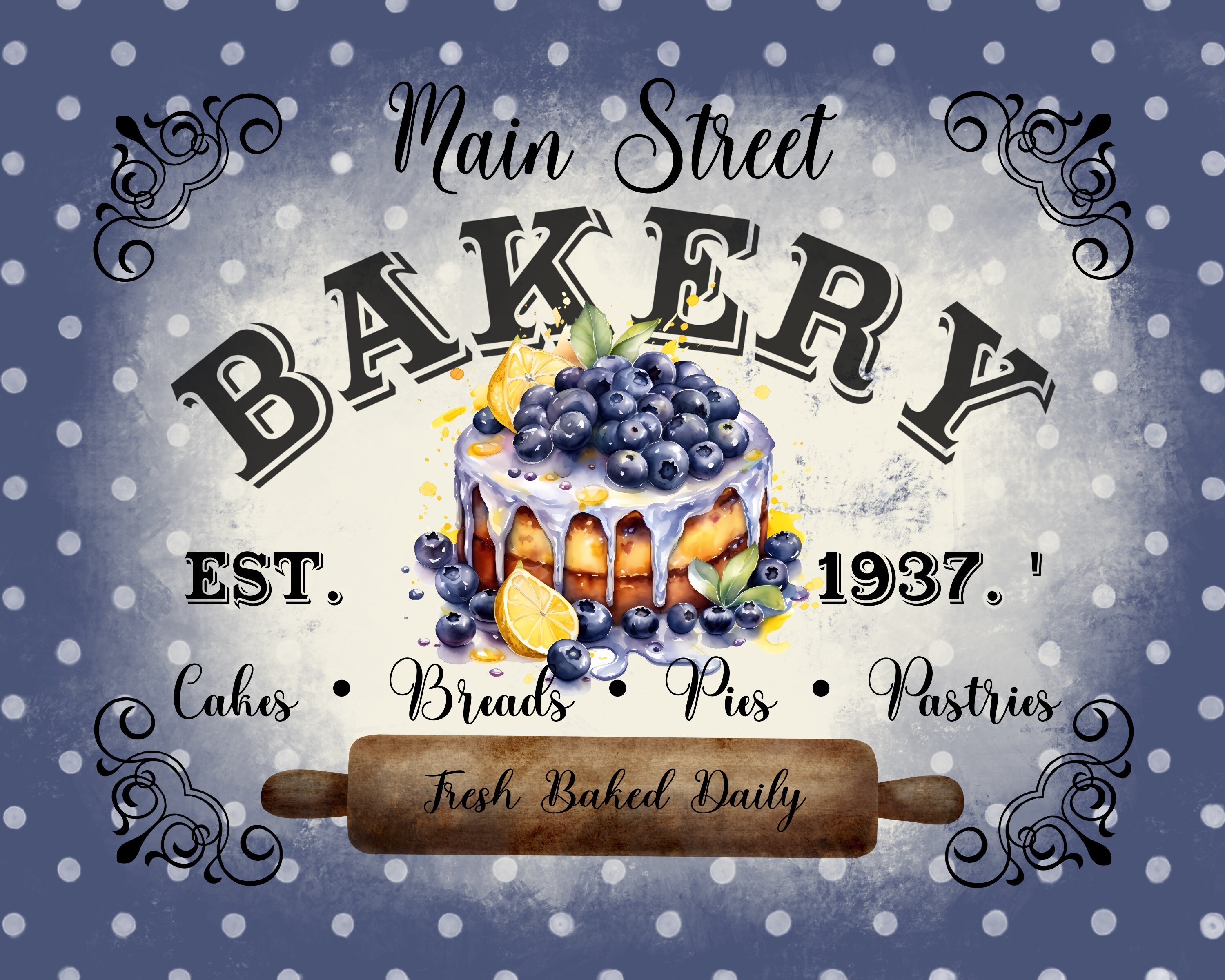 • Hand painted Blueberry Bakery watercolor sign printable bundle • Sized 10”x8” and easily resizable to 20” x 16” and 30”x24” • Includes .jpg file for canvas, photo, poster prints and more • Also includes .png file for printing on bags, mugs, t-shirts, pillows, blankets, notecards, postcards, and more