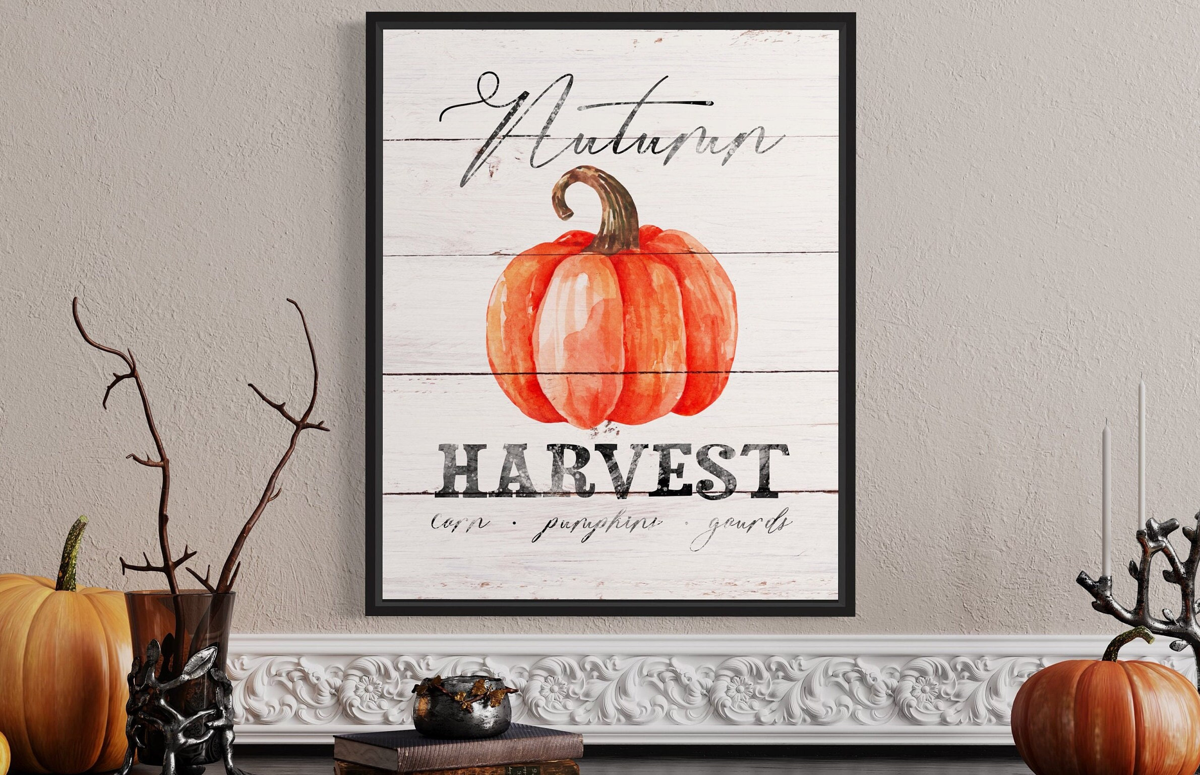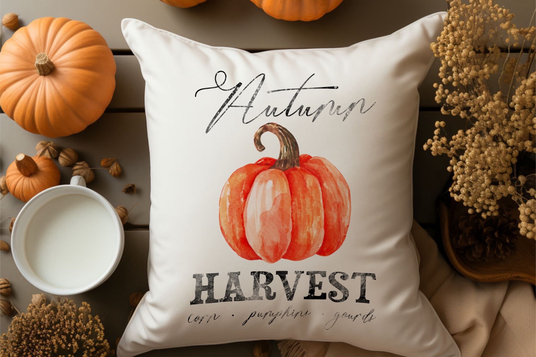 • Hand painted Autumn Harvest Pumpkin watercolor printable bundle • Sized 8”x10” and easily resizable 16” x 20” and 24”x30” • Includes .jpg file for canvas, photo, poster prints and more • Also includes .png file for printing on bags, mugs, t-shirts, pillows, blankets, notecards, and postcards and more