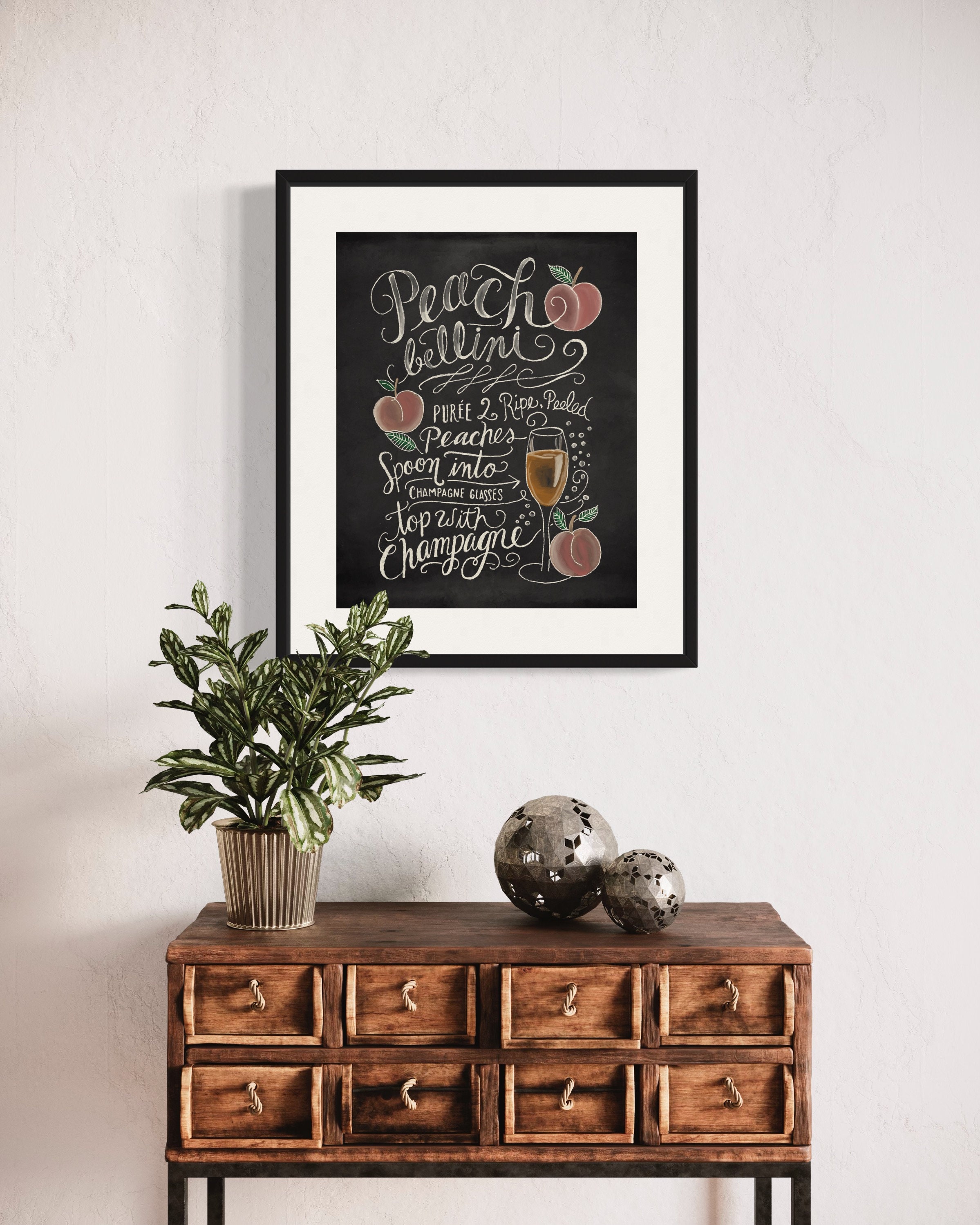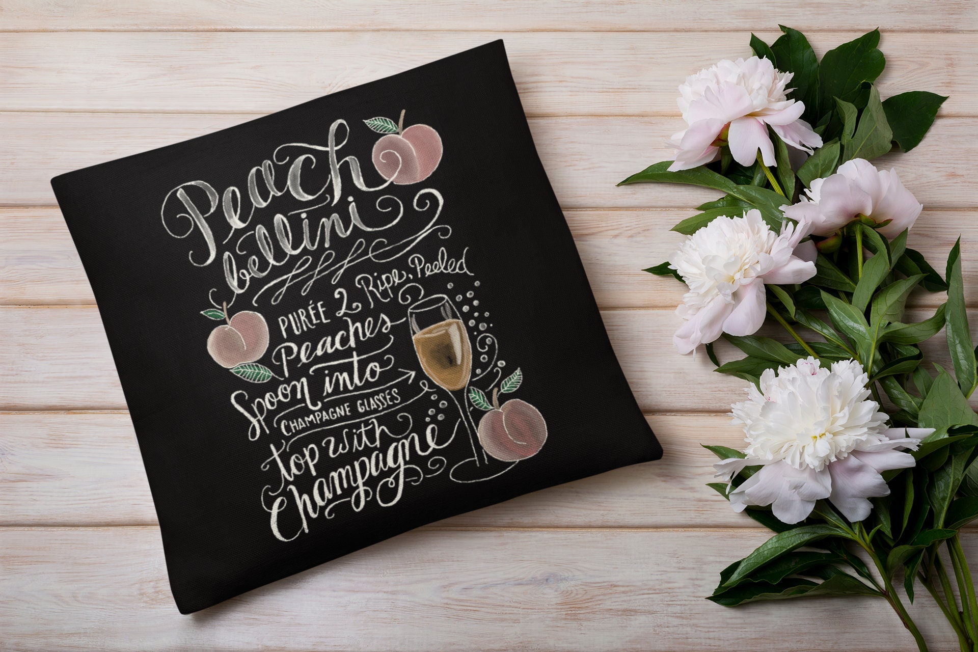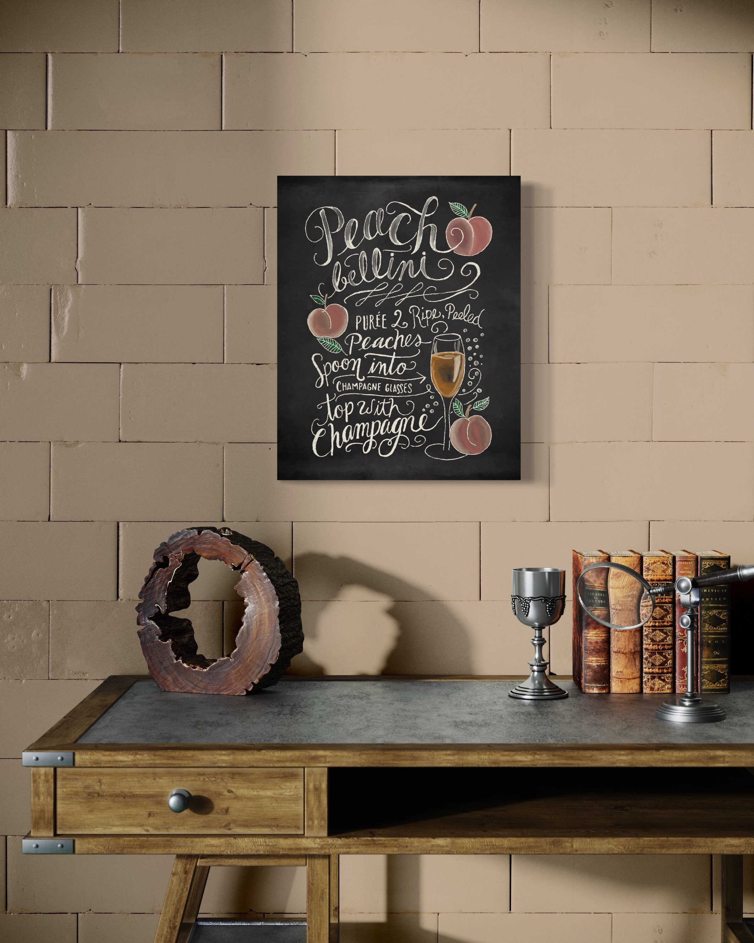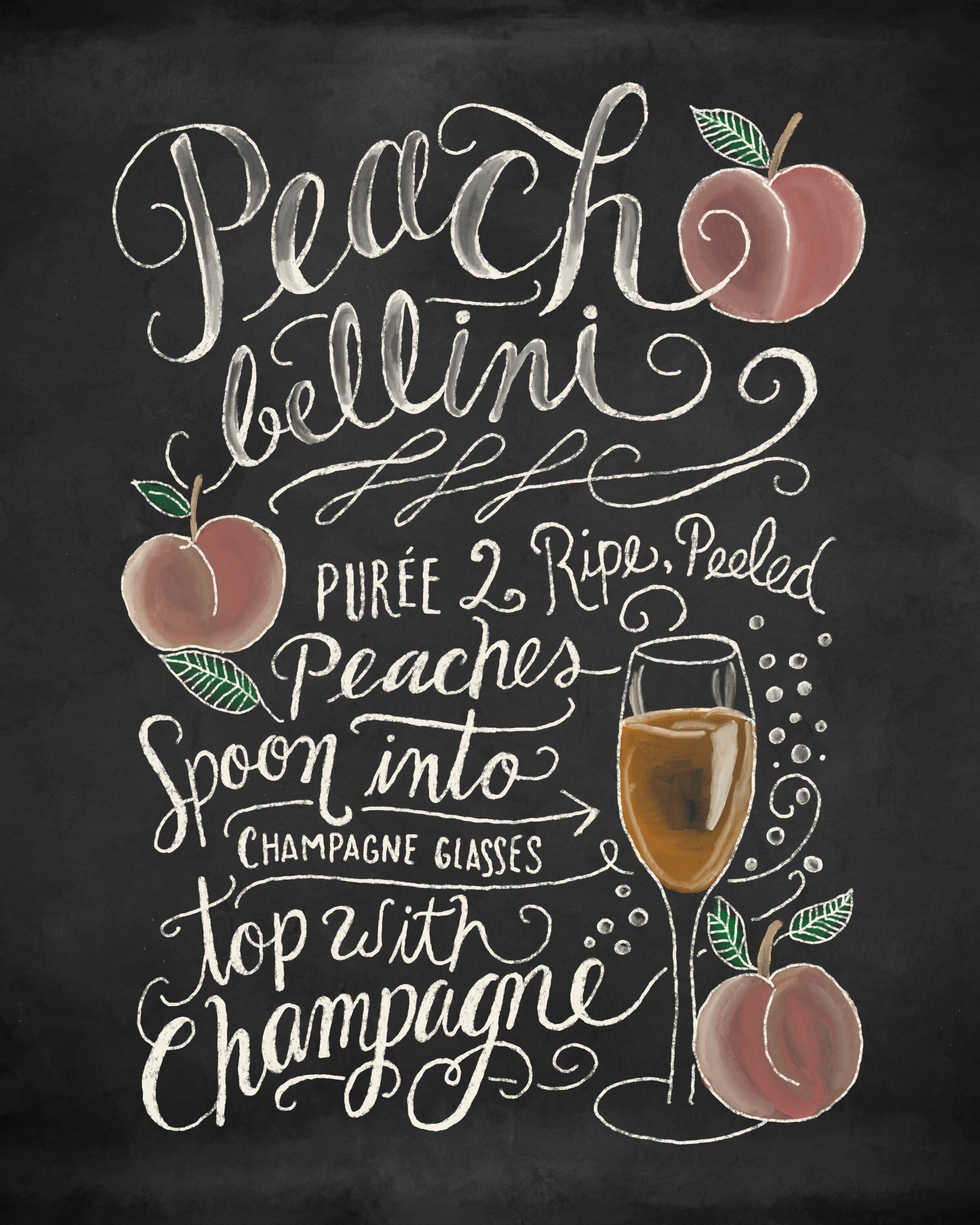 Welcome to the perfect addition to your bar or kitchen - the Peach Bellini Recipe Chalkboard Sign Bundle! This hand-drawn chalkboard printable Peach Bellini recipe is sure to add a touch of charm and sophistication to any space.