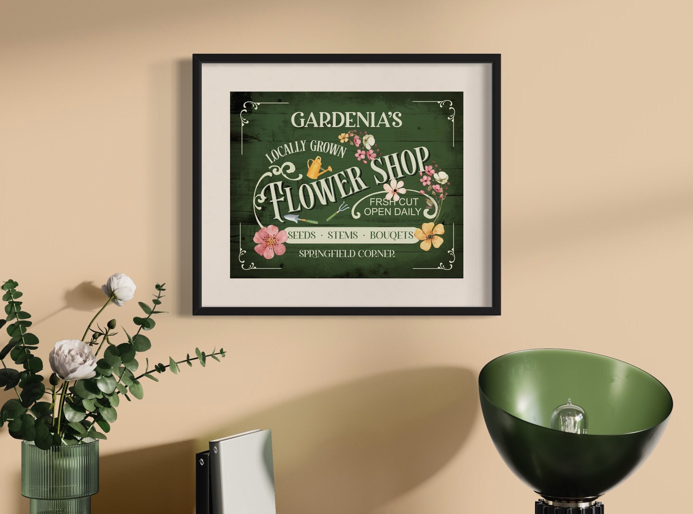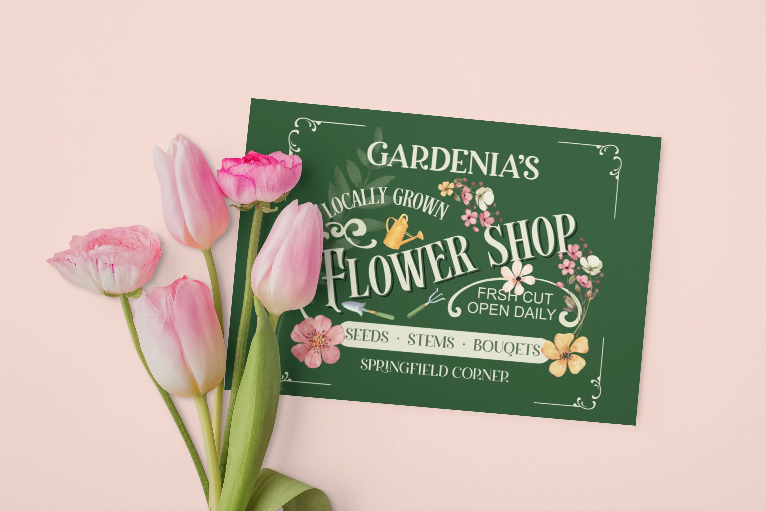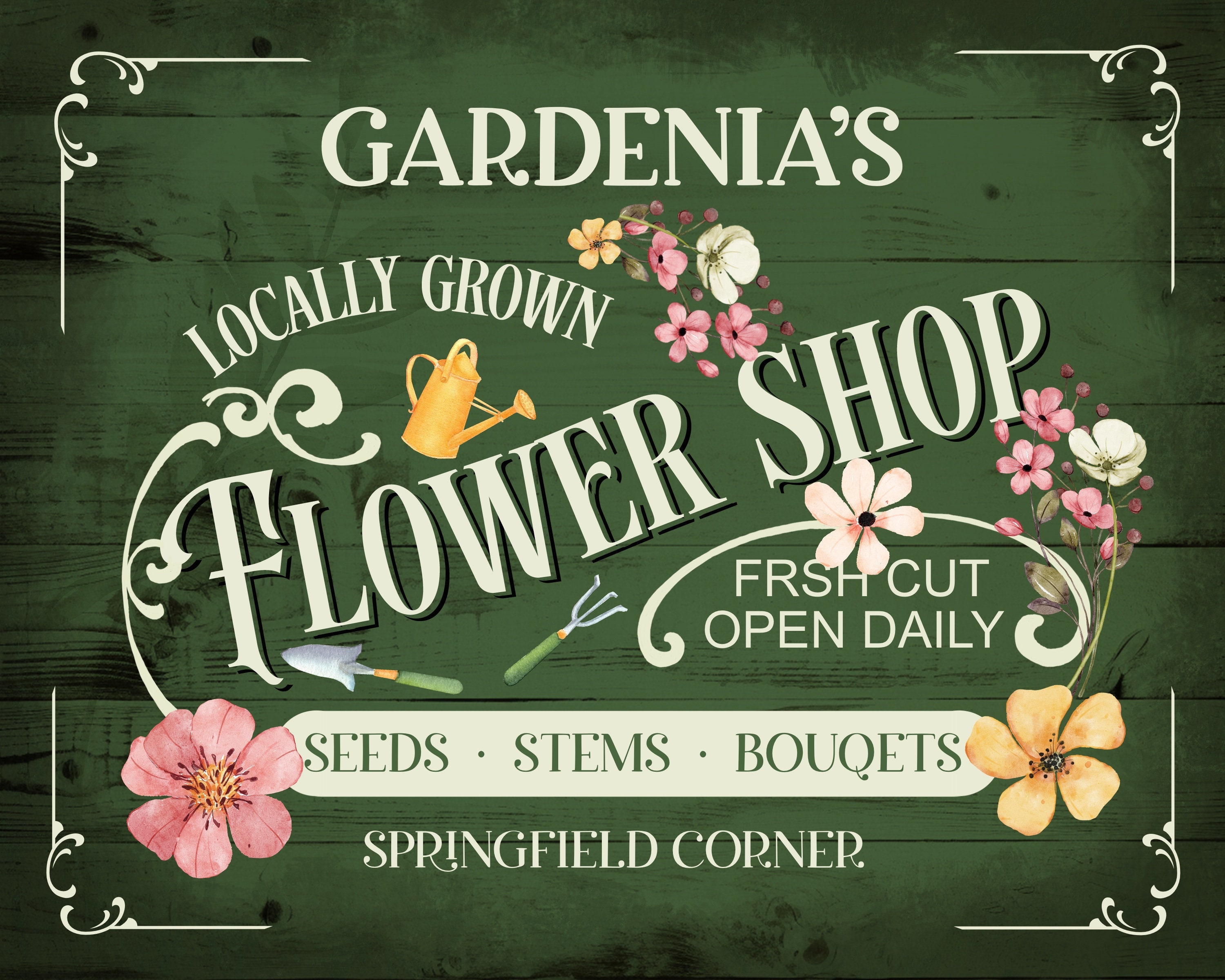 Introducing the Gardenia’s Flower Shop on Springfield Corner Hand Painted Sign Printable Bundle. This delightful set includes everything you need to bring a touch of springtime charm to your home or business.