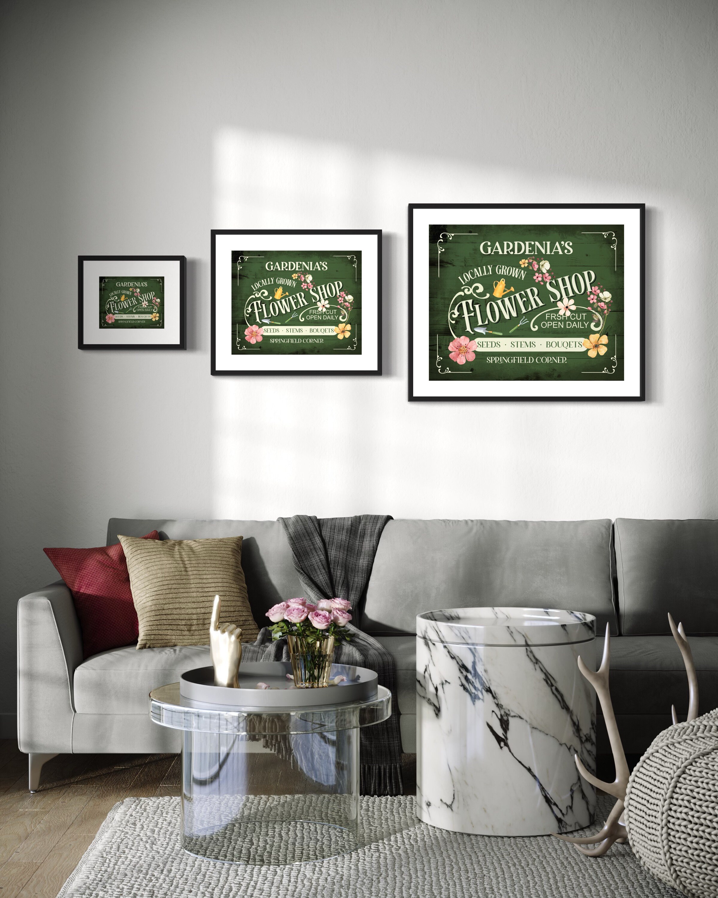 - Hand painted spring shop sign printable bundle with floral accents - Sized at 10” x 8” and easily resized to 20” x 16” and 30” x 24” - Includes .jpg file for canvas, photo, poster prints, and more - Also includes .png file for printing on bags, mugs, t-shirts, pillows, blankets, notecards, and postcards