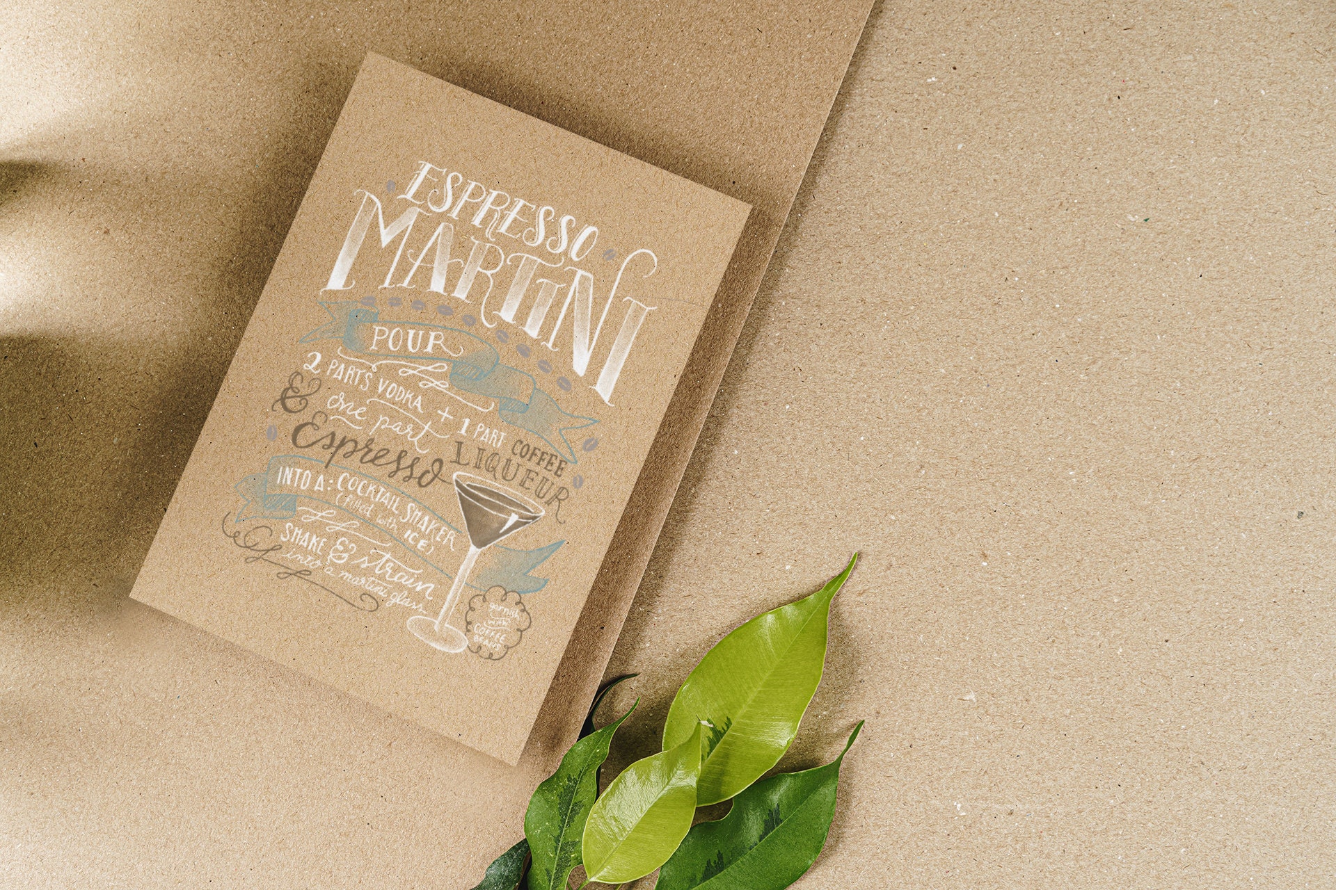 Get ready to shake things up with our hand-drawn chalkboard printable Espresso Martini recipe bundle!