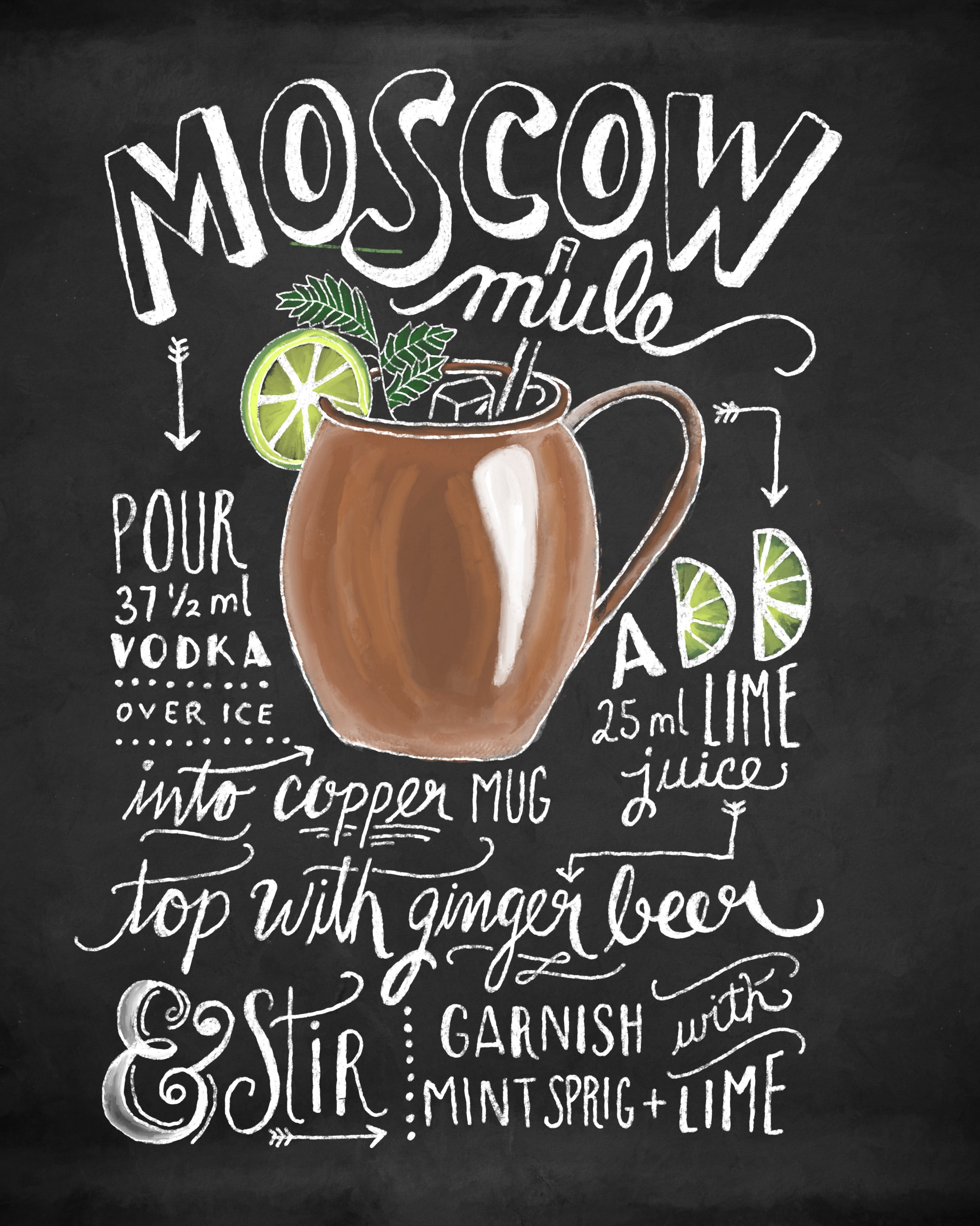 • Hand drawn Moscow Mule cocktail recipe sign printable bundle • Sized 8”x10” and easily resizable to 16” x 20” and 24”x30” • Includes .jpg file for canvas, photo, poster prints and more • Also includes .png file for printing on bags, mugs, t-shirts, pillows, blankets, notecards, and postcards and more